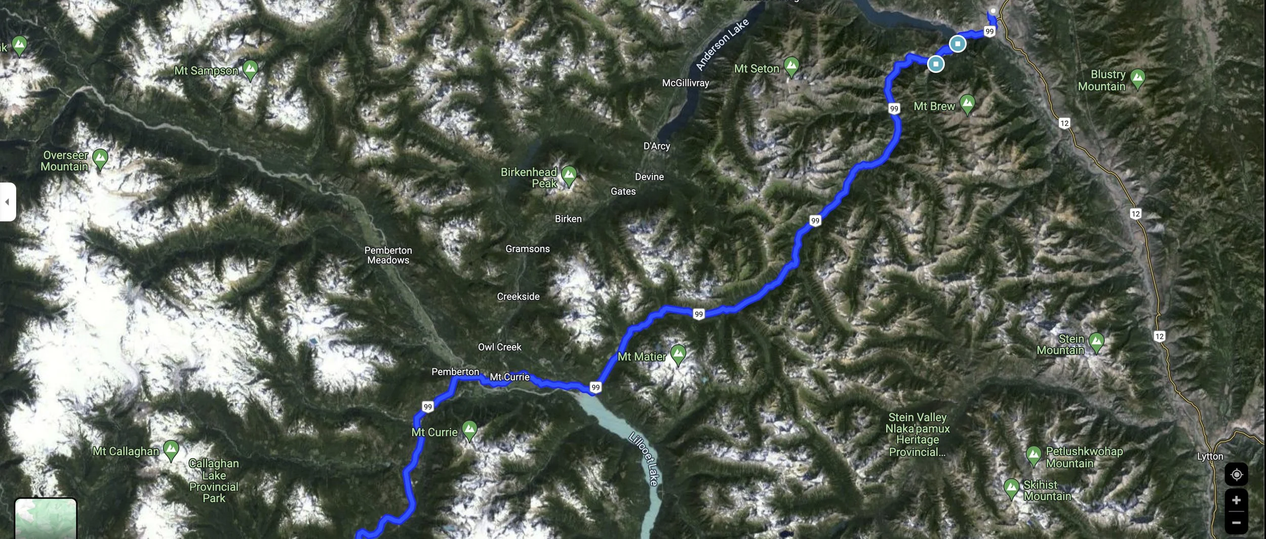 The stretch from Pemberton to Lillooet - some of the most scenic roads in the country.
